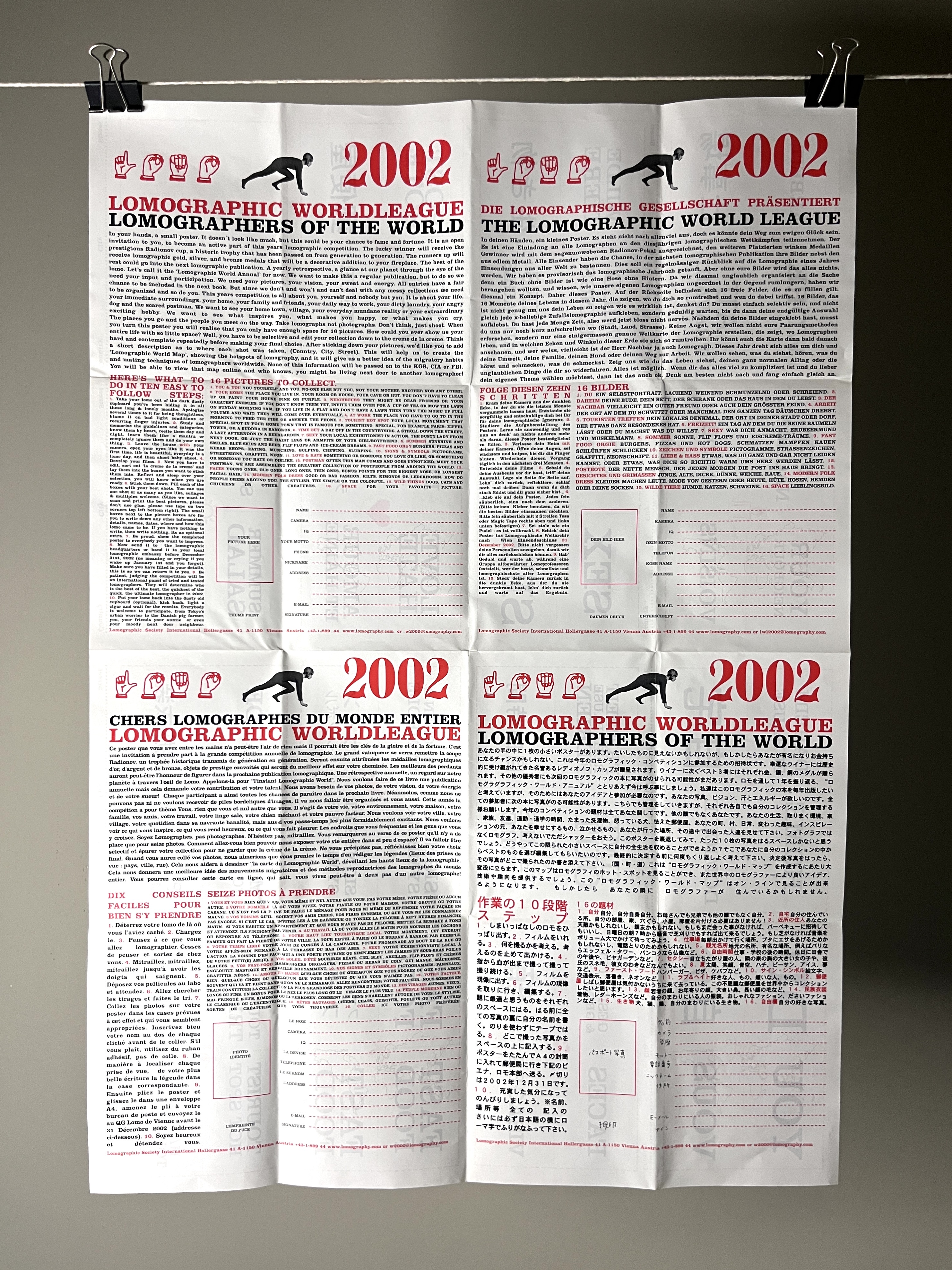 Lomo was so big in the early 2000s and a colleague at the time was super involved. Mr Lomo as he was/is know even won the London A-Z city challenge 2001 (in which I feature!). How I came across this blank 2002 Worlds poster I'm not quite sure (possibly via the the old Lomo Gallery on Rosebery Avenue). As with many pieces on this site, I'm just a sucker for big grids of type and folded paper.