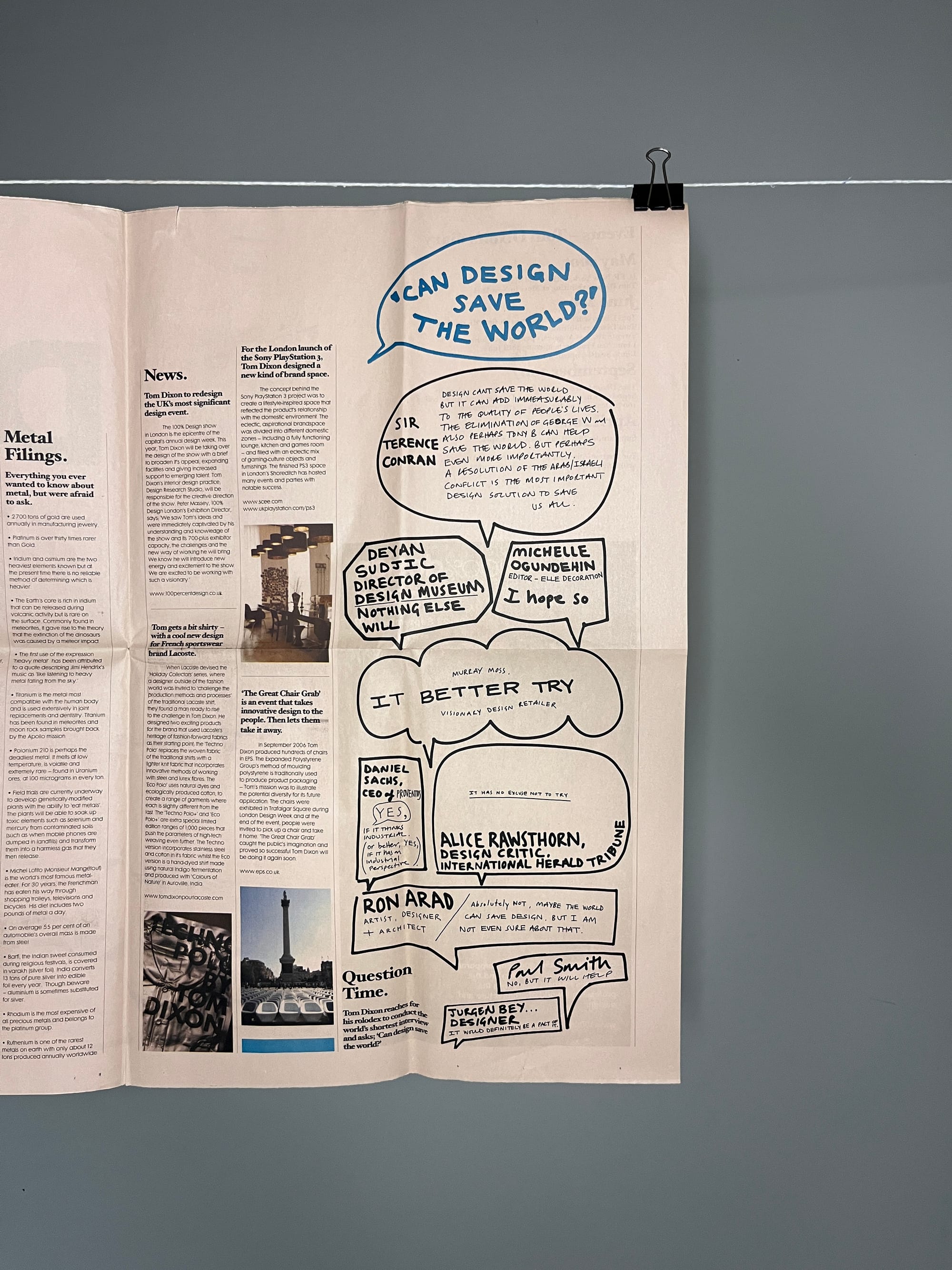 These Tom Dixon papers were likely picked up from some design even or festival. The kind of place I can't resist collecting from. In this issue (I have one other) I found it funny to see the 'can design save the world' question. I'm of the Deyan Sudjic opinion that 'nothing else will' and I say 'funny to see' because I almost can't believe this isn't a clear and agreed on stance.
